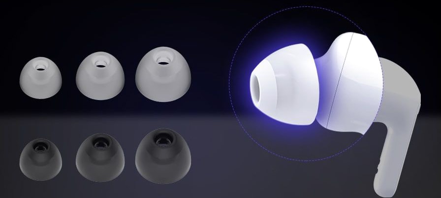 LG TONE Free FN7 ear gels have a new spiral design that maximizes comfort and delivers Active Noise Cancellation at its best. Their vortex ribs provide even distribution of pressure, allowing them to adapt to all ear shapes and reduce any extra noise effectively for a more immersive listening experience.