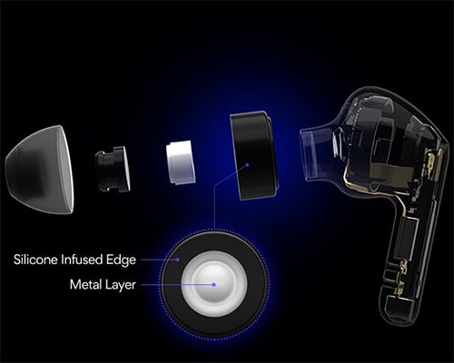 More powerful than ever — the newly designed TONE Free FN7 hardware creates a fuller bass. The Diaphragm’s edge is made with a high-quality silicone material, the dome with a stronger metal, and the damper with a more dense texture.