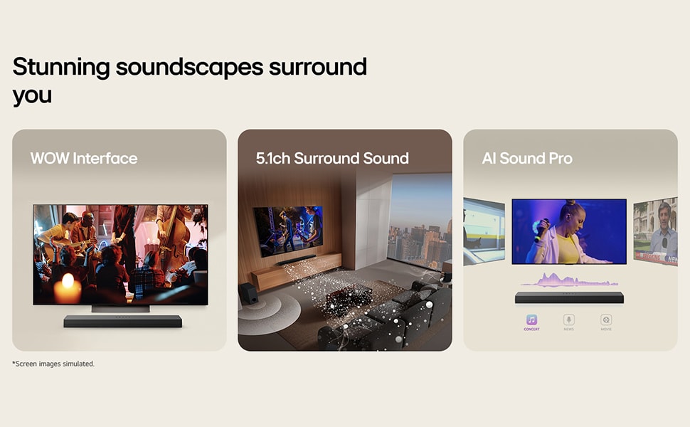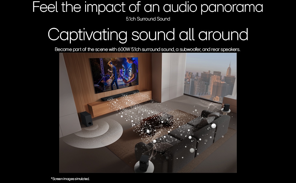 LG Soundbar S65TR, 5.1 Ch, 600 W Powerful Surround Sound with Wireless Subwoofer and Rear Speaker, Dolby Digital