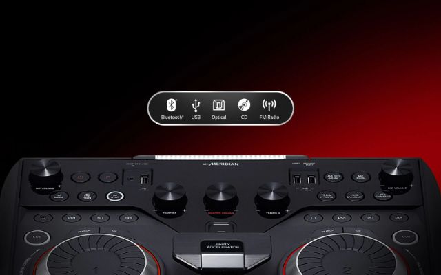 LG XBOOM OL100 has Bass and Space technology from Meridian, the world's leading High-Resolution audio brand. Upgrade your listening experience with big party beats and refined music.