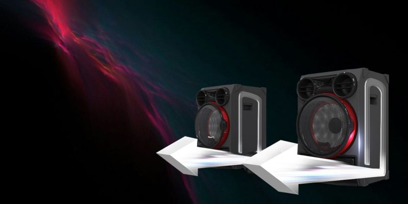 Link two LG XBOOM OL100 systems together wirelessly to increase the output to 4000 watts. This is immense sound for amazing parties.