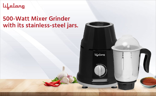 The Lifelong 500-Watt Mixer Grinder with its stainless-steel jars and sleek finish ticks both the boxes of durability and design. Beautifully designed, this value-for-money product will surely serve your purpose of reducing preparation time by hours.