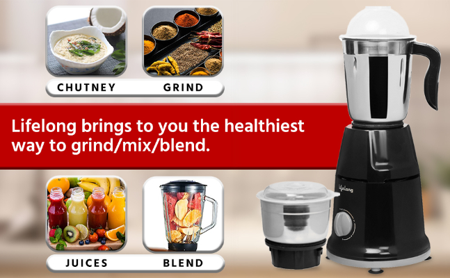 * This Lifelong Maxo LLMG93 Mixer Grinder image is for illustration purpose only. Actual image may vary.This mixer grinder features sturdy and rust-resistant blades for effortless grinding and mixing.