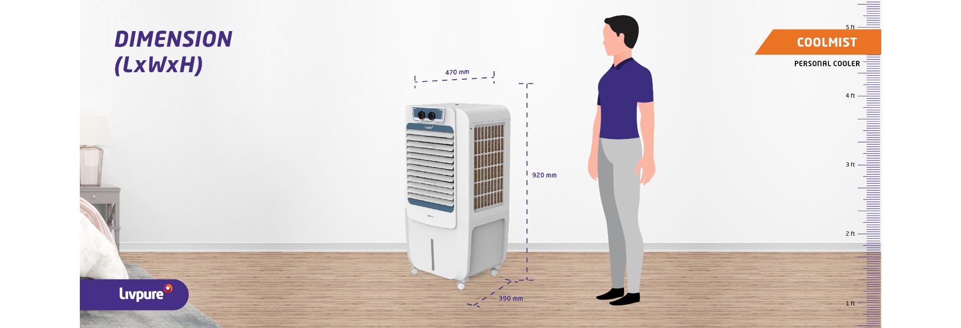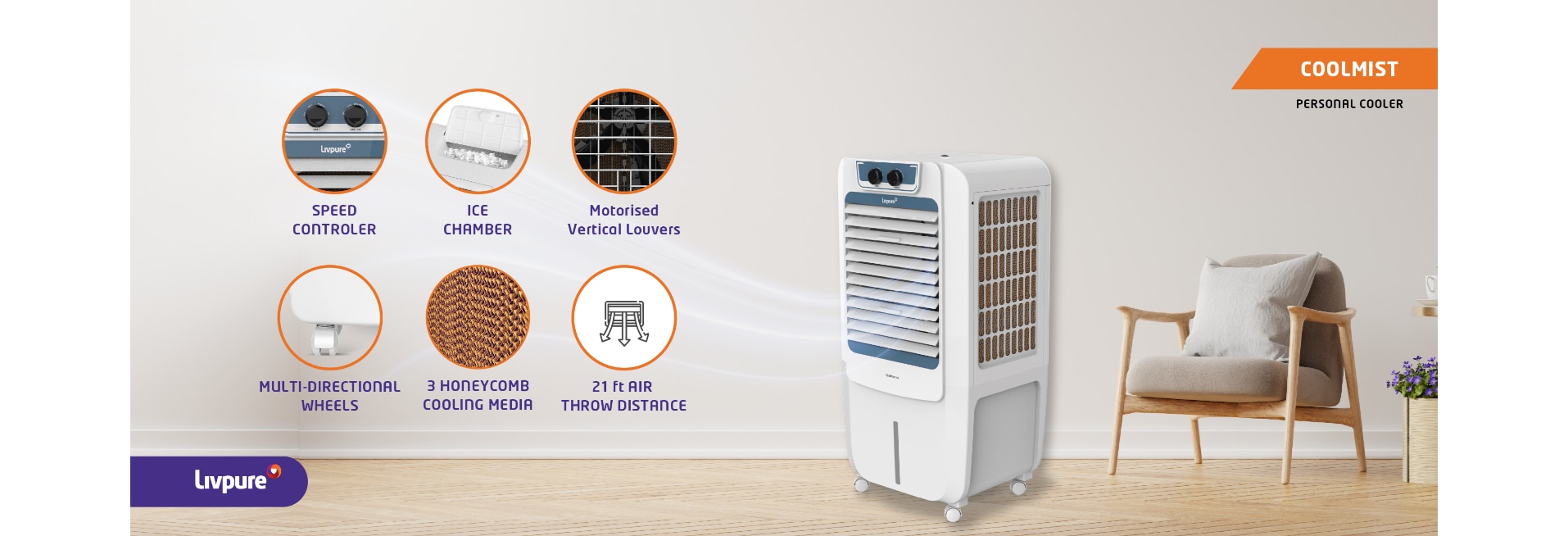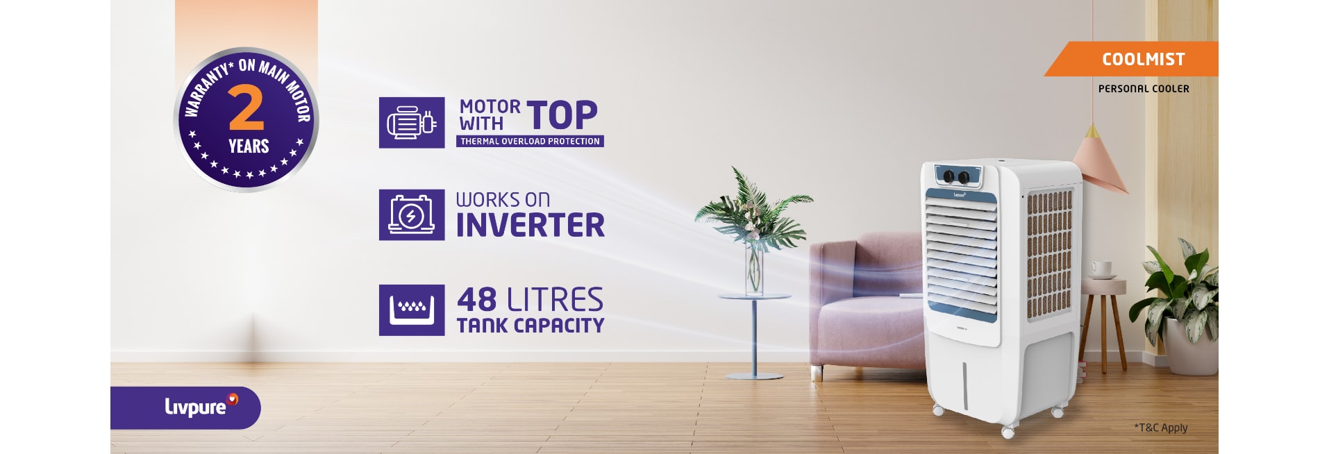 Livpure Coolmist 48L Personal Air Cooler with 2300 CMH Air delivery, 48 Litres, White & Grey