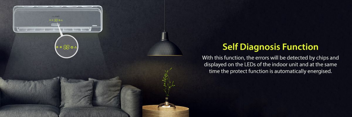 The Self Diagnosis function helps chips to detect errors and display it on the LEDs of the indoor unit and simultaneously energize the protect function of the AC.