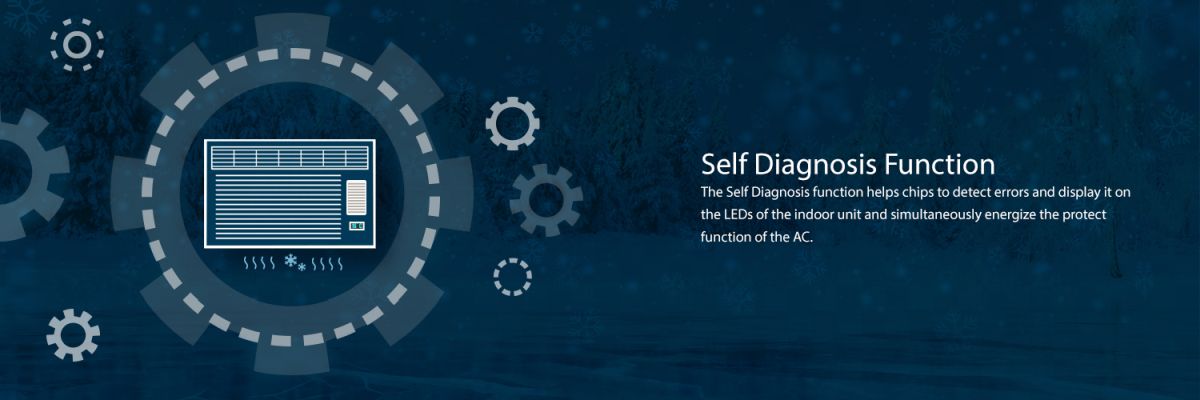 The Self Diagnosis function helps chips to detect errors and display it on the LEDs of the indoor unit and simultaneously energize the protect function of the AC.