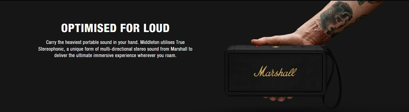 Marshall Middleton Portable Bluetooth Speaker, More than 20 Hours of Playtime, IP67, Stereo Mode, Quick charging, Cream