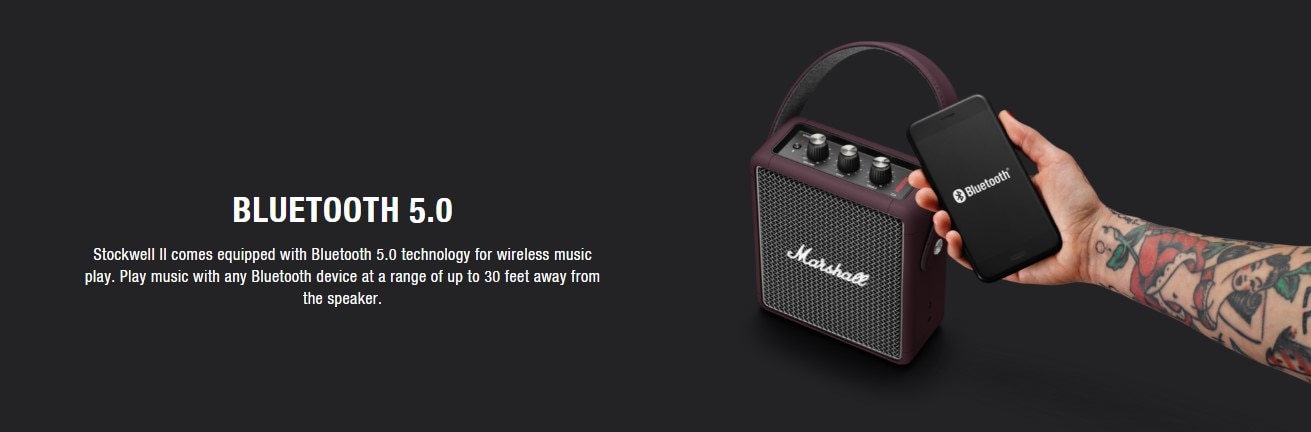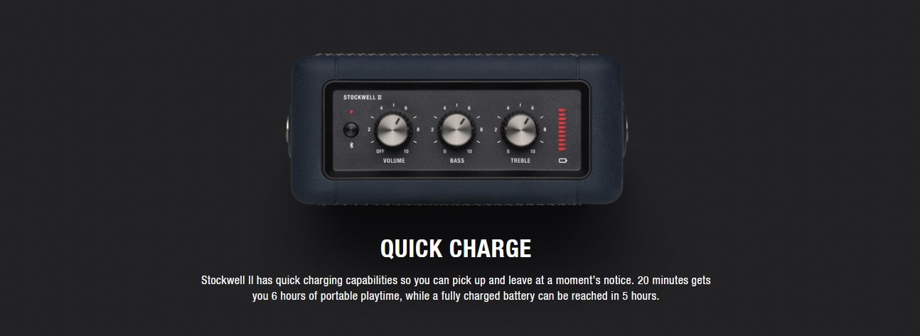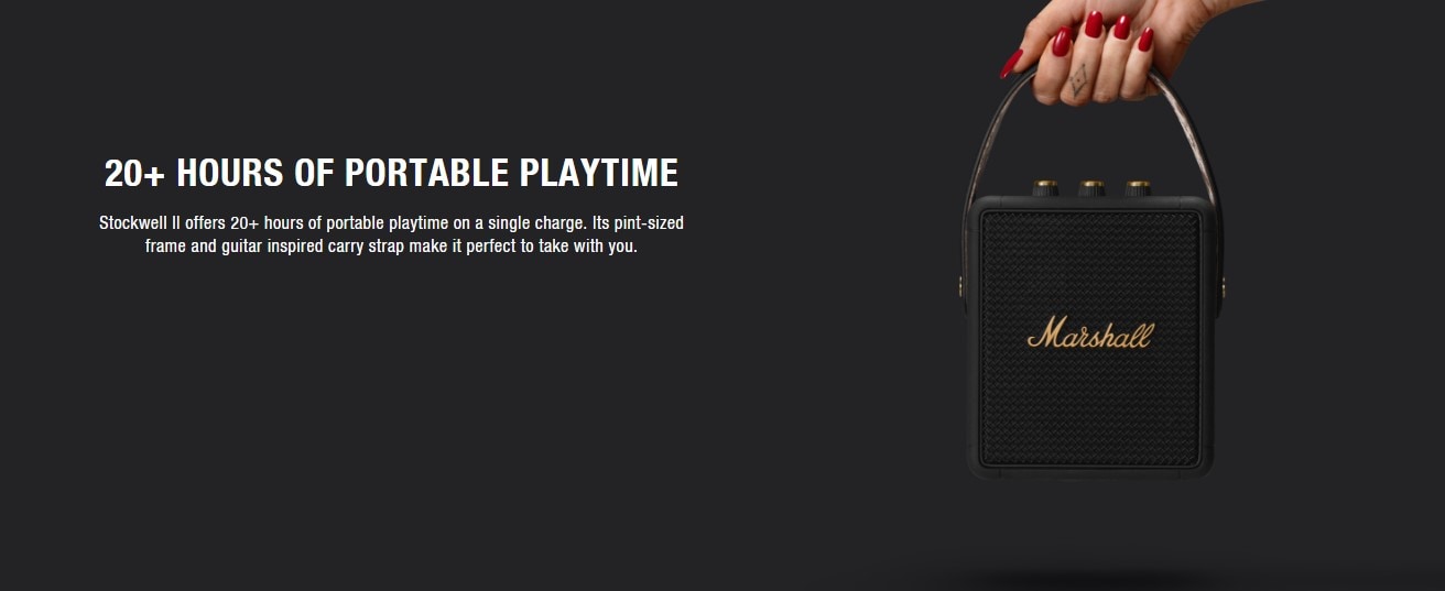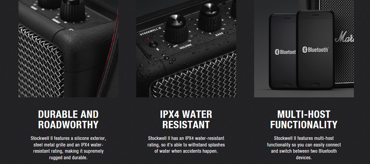 Marshall Stockwell II Bluetooth Speaker, More than 20 Hours of playtime, IPX4 Water Resistant, Bluetooth v5.0, Upto 30 feet Range, Black & Brass