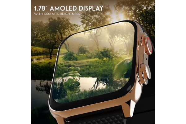 Maxima Max Pro Hunt 4.52 cm (1.78 inch) Super AMOLED Display 1000 Nits, BT Calling, Premium Metallic Smartwatch (Rose Gold Black Strap, Free Size)