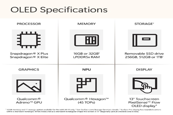 - Processor: Qualcomm Snapdragon X Elite with Qualcomm Hexagon NPU with 45 TOPS