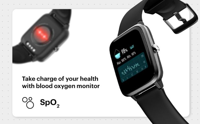 * This Noise ColorFit Pro 2 Oxy Smart Watch image is for illustration purpose only. Actual image may vary.How does it work? The SpO2 sensor comprises of a single LED and dual photobodies embedded on the back of the watch. The infrared LED penetrates your skin, shining light on your blood vessels when you have it strapped on. The two photobodies then measure the quantity of the reflected light and calculate the total amount of blood oxygen in your body.