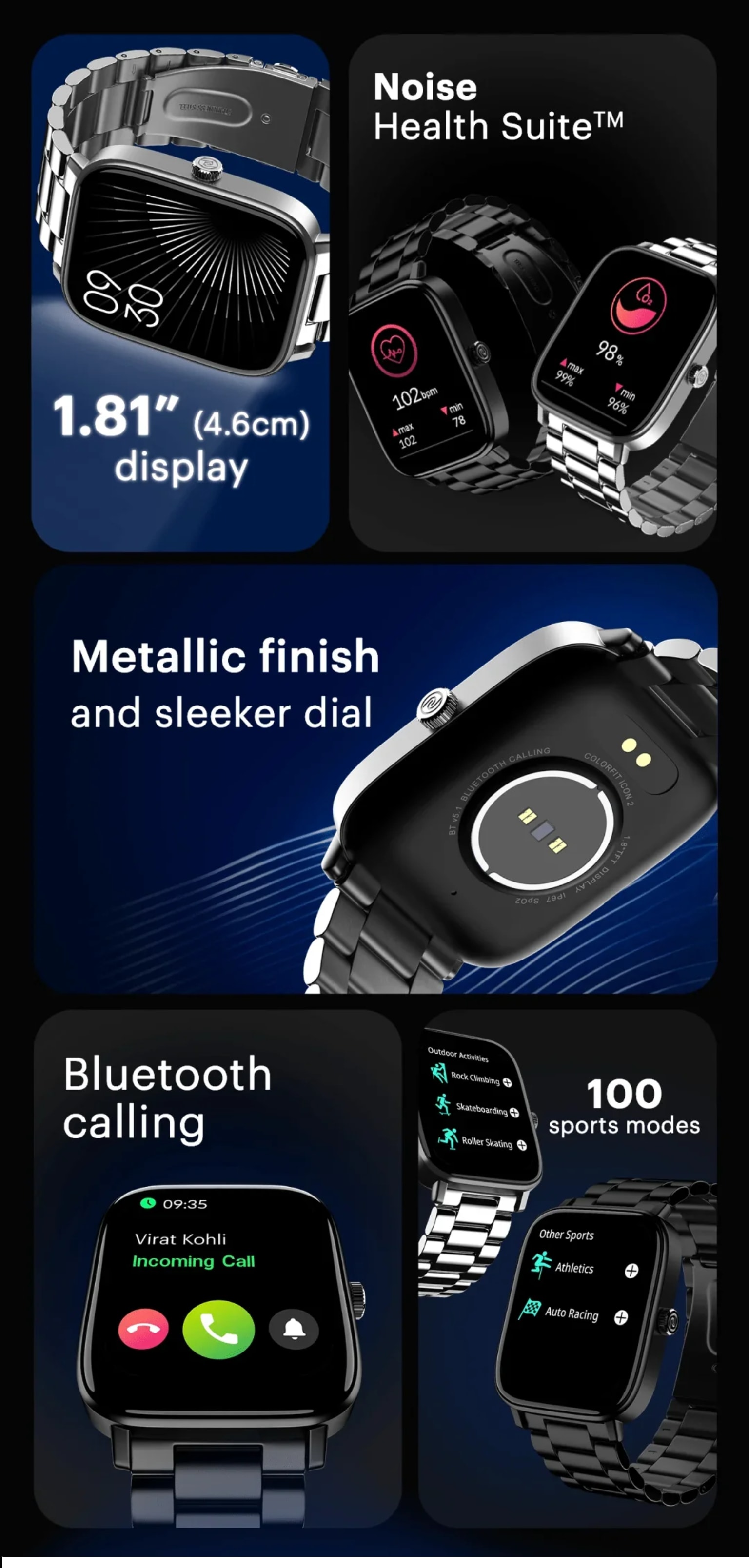 Noise ColorFit Quad Call Smartwatch, Elite Silver