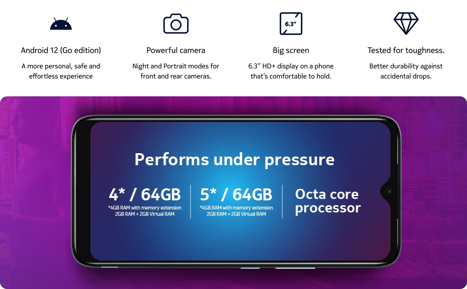- Octa-core up to 1.6Ghz Unisoc 9863A1 Processor