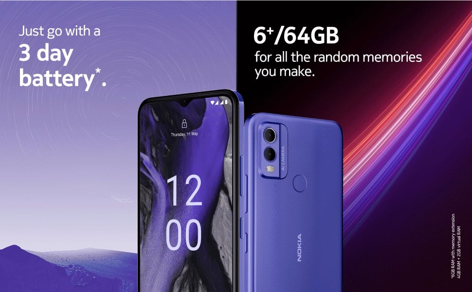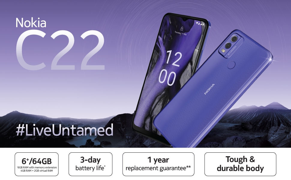 Nokia C22 64 GB, 4 GB RAM, Charcoal, Mobile Phone