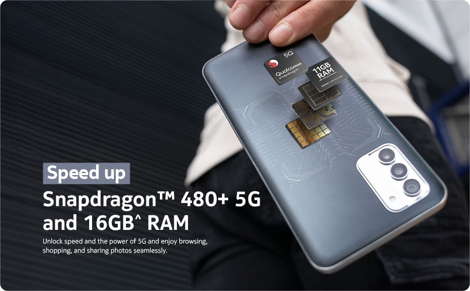 - Snapdragon 480+ Octa Core, 2.2 GHz Processor