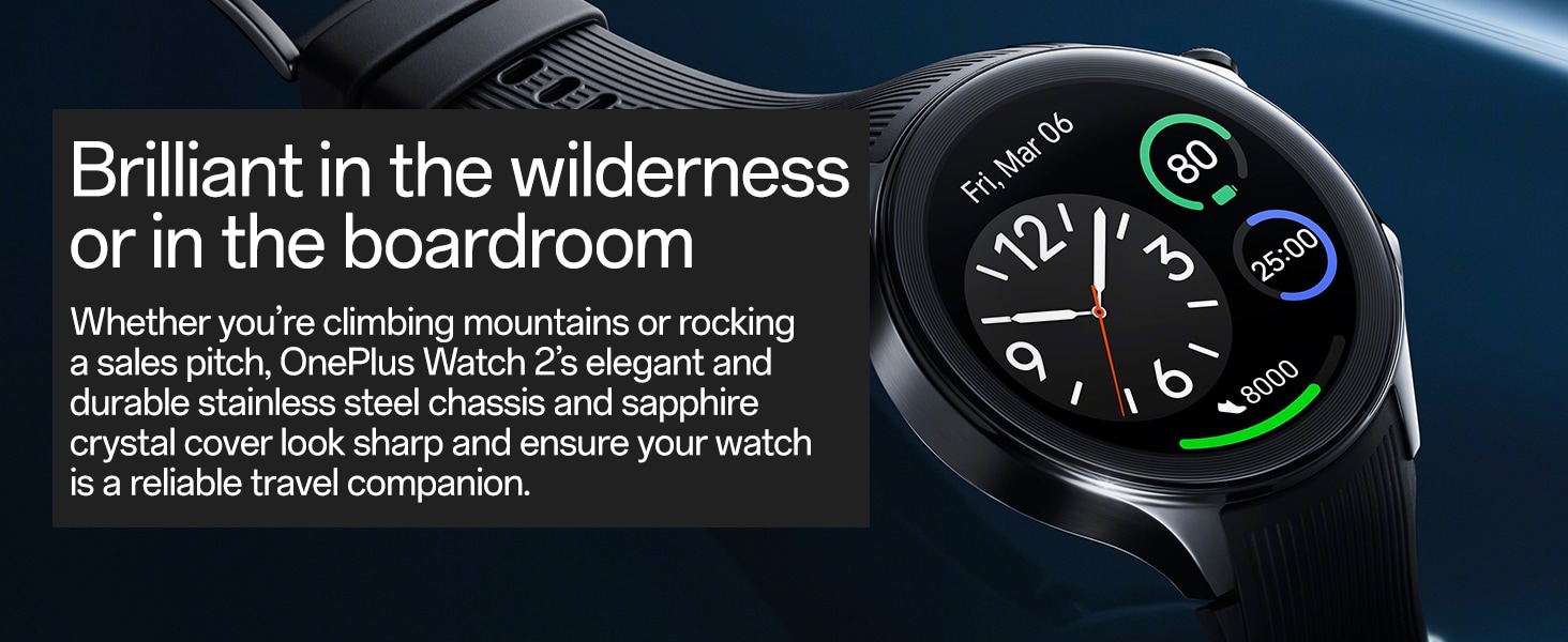 OnePlus Watch 2 , 3.63 cm (1.43 inch) AMOLED Display with Wear OS4,Snapdragon W5 Chipset,Upto 100 hrs Battery Life,Stainless Steel & Sapphire Crystal Build,Dual Frequency GPS,IP68 & Bluetooth Calling (Black Steel)