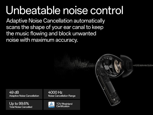 - [49dB Adaptive Nosie Cancellation]: Advanced noise-cancelling technology,coupled with a high-performance chip,elevates the depth of noise cancellation upto 49dB.This reduces noise and blocks out chaos and allows users to enjoy music immersively