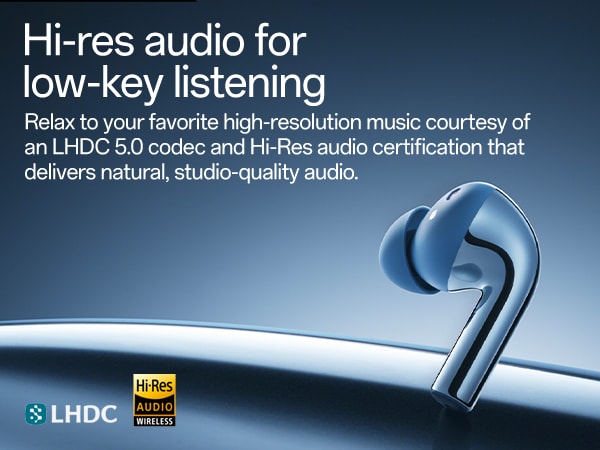 - [Best-in-class Sound Quality]: 10.4mm+6mm dynamic dual driver, LHDC5.0 Bluetooth CODEC and high resolution certification makes the product best in its sound quality with deeper bass, delicate treble and clear vocals; [Sliding Volume Control]: Slide on the surface of touch area of buds to adjust the volume.Sliding up increases the volume, while sliding down decreases the volume