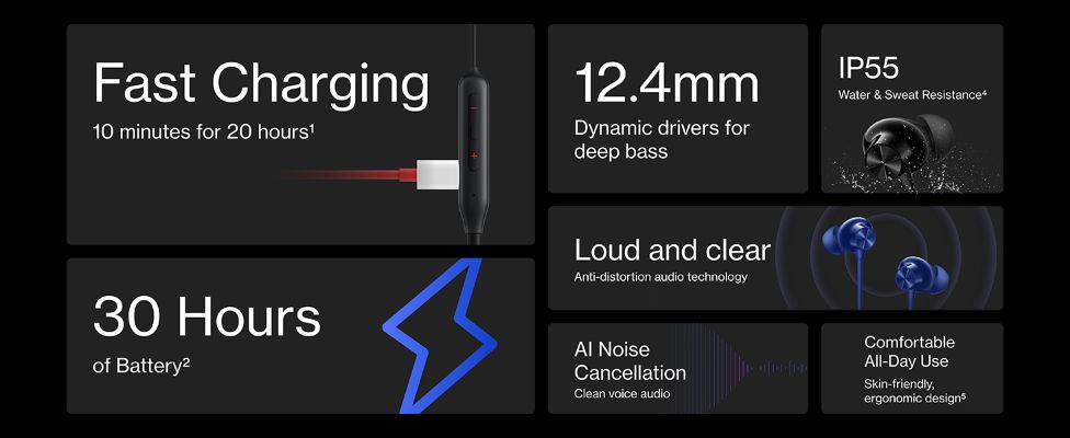 - Water and sweat-resistant, the IP55-rated internals and design ensure your OnePlus Bullets Wireless Z2 stay all-weather ready.