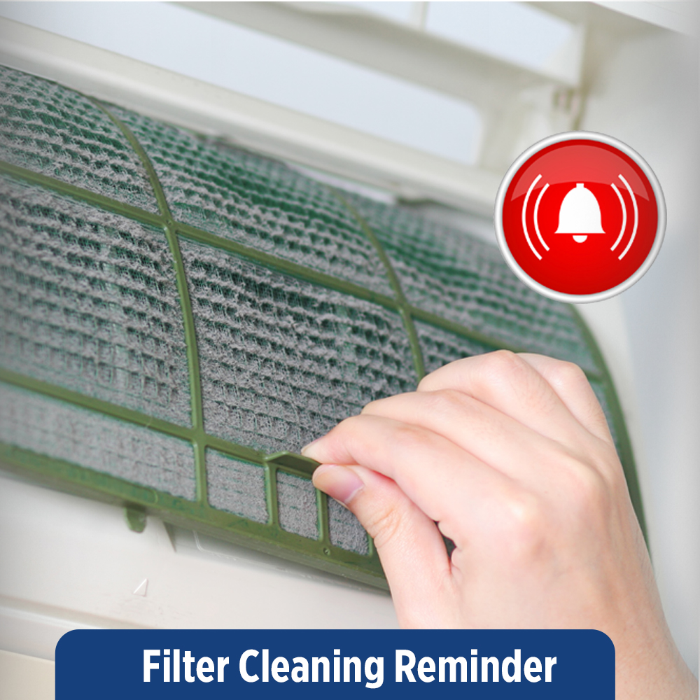 This feature automatically detects and reminds the need for cleaning the filter, periodically.
