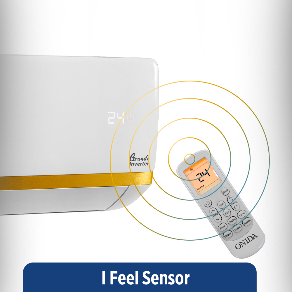 The remote of this AC comes with a temp sensor that maintains the surrounding temperature of the remote controller as the same as the set temperature.