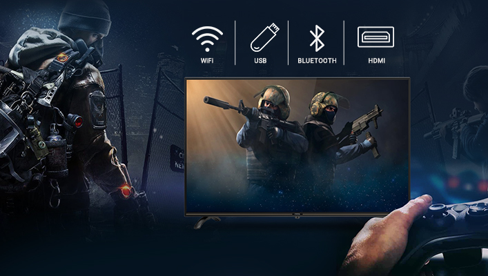 * This Onida 55UIF-S Smart TV image is for illustration purpose only. Actual image may vary.Enjoy seamless home entertainment with built-in Wi-Fi and LAN. Plug & Play with USB or HDMI ports and instantaneously enjoy movies, photos or music. Also Enjoy a seamless Bluetooth experience by connecting your Bluetooth devices to the TV.