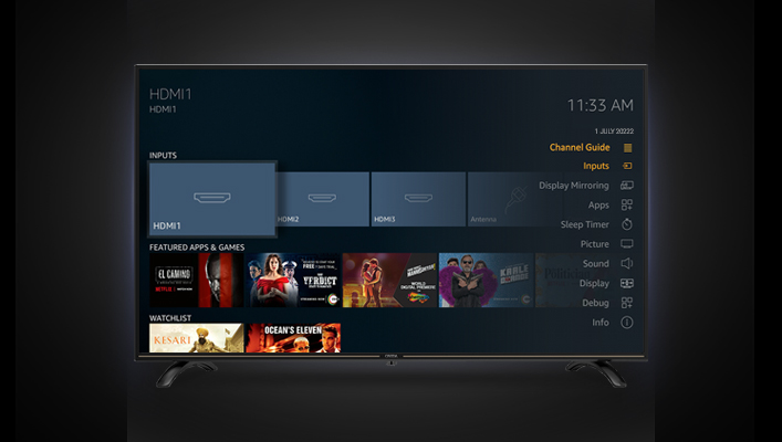 * This Onida 55UIF-S Smart TV image is for illustration purpose only. Actual image may vary.Browse and find Live TV content from your favorite OTT apps in a separate tab on Fire TV. Or with the simple set up using IR cable, access your DTH cable channels directly from On Now carousal on Home screen, without changing the HDMI inputs. Now you will be able to access live channels from your choice of OTT content providers and from your DTH cable provider, by simply using Fire TV edition voice remote.