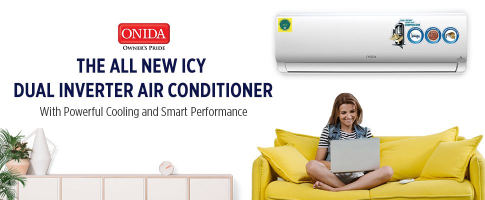 Onida 1.5 Ton 3 Star IR183ICY Inverter Split AC with Copper condenser,4 Way Swing, Gold Fins, I-Feel Sensor, Eco-Friendly R32 Gas