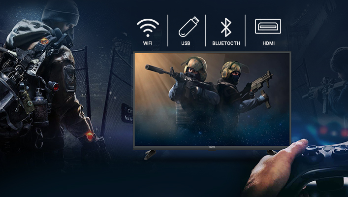 * This Onida 32HIZ-R1 Smart TV image is for illustration purpose only. Actual image may vary.Enjoy seamless home entertainment with built-in Wi-Fi and LAN. Plug & Play with USB or HDMI ports and instantaneously enjoy movies, photos or music. Also Enjoy a seamless Bluetooth experience by connecting your Bluetooth devices to the TV.