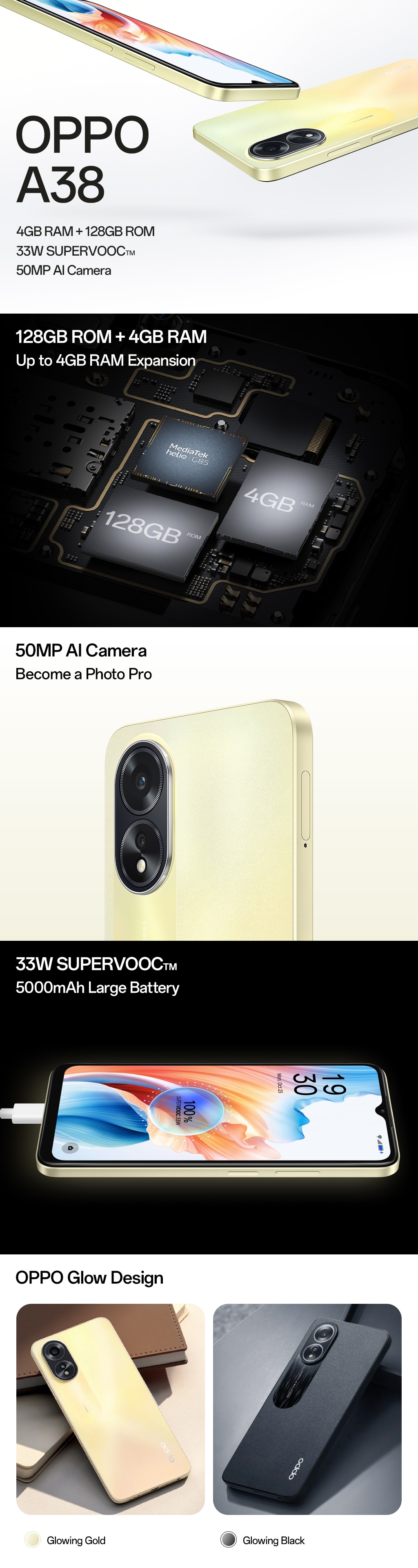 Oppo A38 128 GB, 4 GB RAM, Gold, Mobile Phone