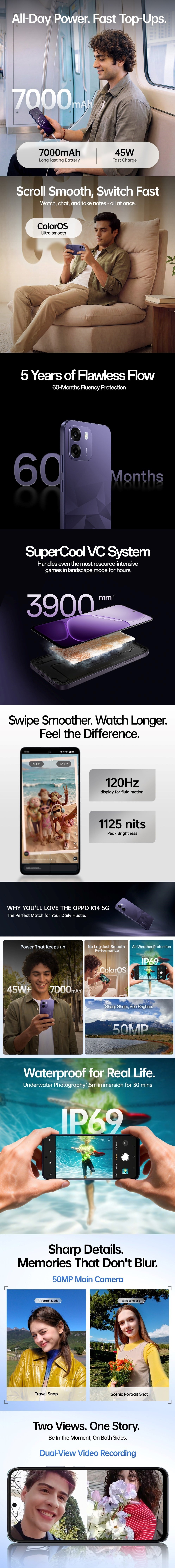 OPPO K14 5G 256 GB, 6 GB RAM, Prism Violet, Mobile Phone