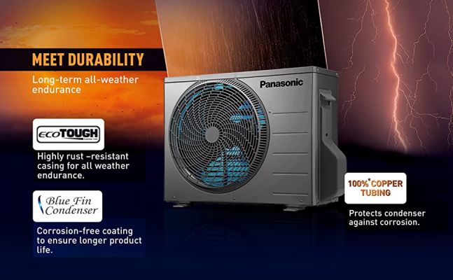The outdoor unit of Panasonic ACs is made of special material casing “Eco-Tough” made of Japanese steel that safeguards it from tough weather condition. Enjoy life long comfort with Panasonic AC that feature 100 percent pure copper coils for faster heat transfer and resistance to corrosion. Panasonic designs its products to be user friendly so our customers can use them for a long time with confidence. Shield Blu protects Evaporator against corrosion from air, water and other corrosive elements. Panasonic ACs come with R32 Refrigerant that protects the condenser from accidental fire while ensuring zero damage to the ozone layer. Exceptionally crafted to resist tough weather conditions like rain, direct sunlight and strong winds. This Panasonic air conditioner's main mission is to provide a level of durability that allows it to operate efficiently for years.