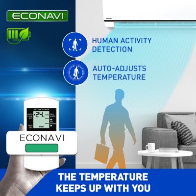 ECONAVI has dual sensors – Human Activity Sensor and Absence Detection Sensor. Together, they monitor human location, movement and presence to use energy more efficiently. By adapting to the way you live and optimizing operation, this unique feature makes the air conditioning in your home more energy efficient .