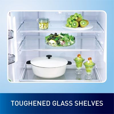 The strong tempered glass shelves can withstand loads of up to 100 kg, so you can put in stew pots, large bottles and other heavy items as they are.