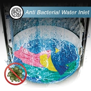 Uses water shower instead of a full water load in the first rinse to remove any excess foam or detergent in the clothes while also saving up to 28% water in the process