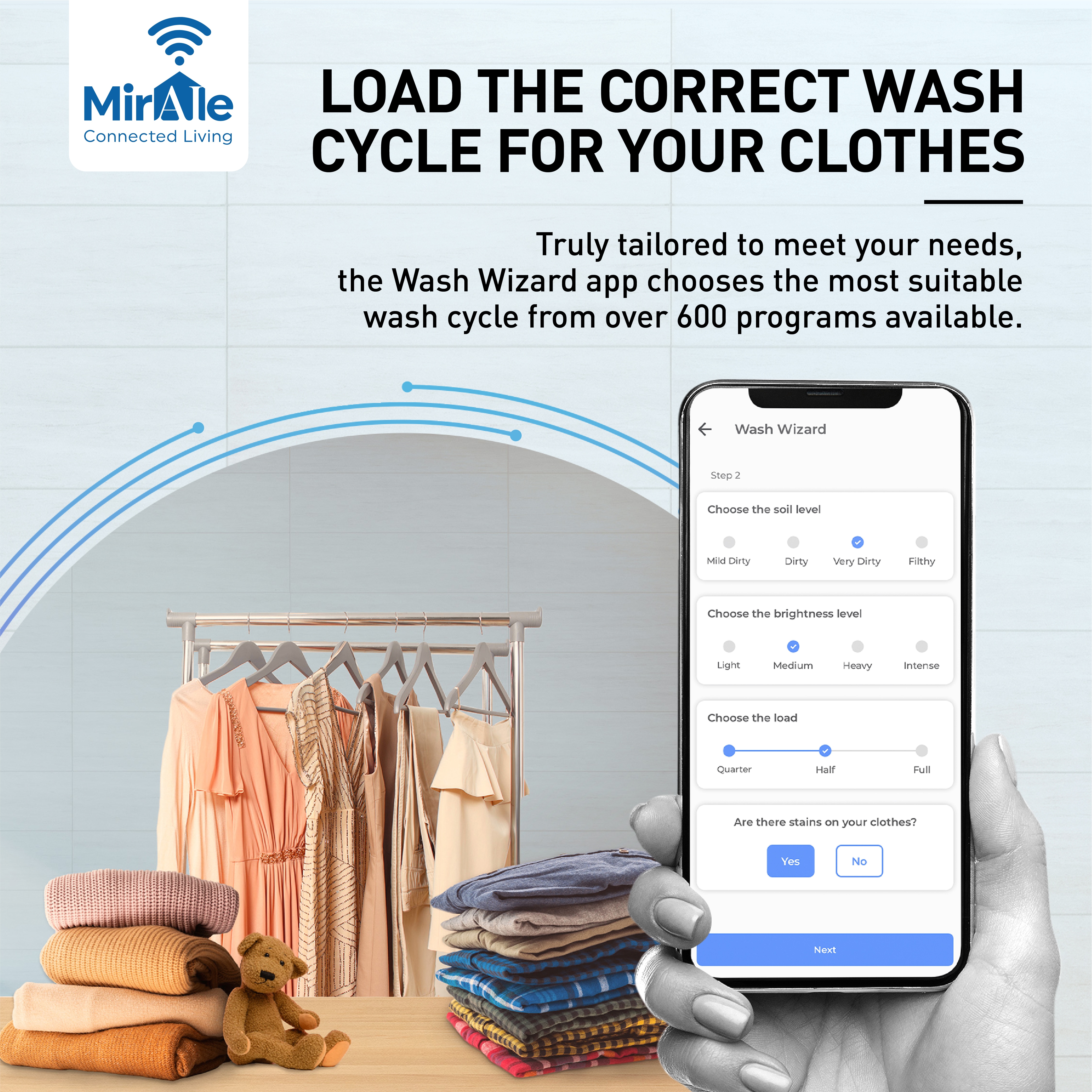 Different fabrics require different care. With Wash Wizard, let the app customize a wash cycle unique to your laundry load based on the clothes' type, colour, dirt level and more. Choose from 100+ wash options