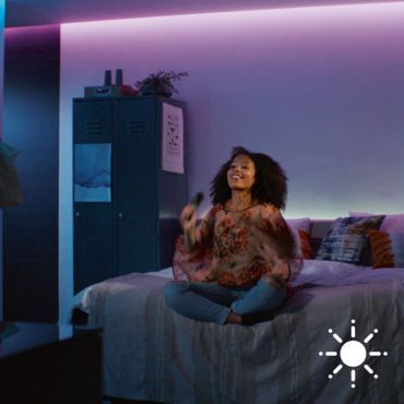 With a high output of 1600 lumen and light coverage over its total length, hue Lightstrip Plus gives enough light to be used both as a decorative and functional light source.