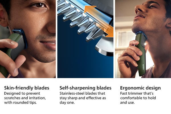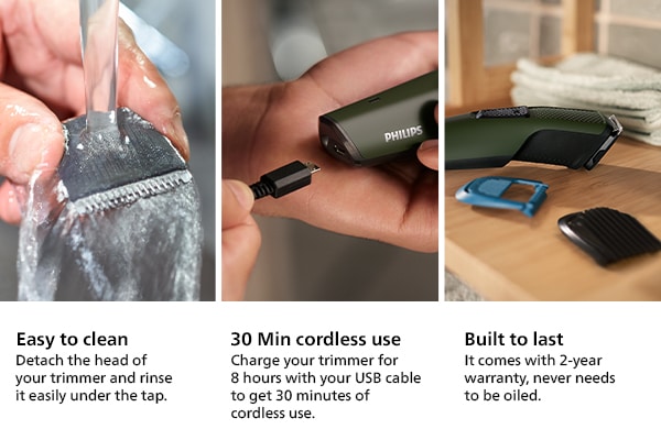 Philips Cordless Beard Trimmer with Dura Power Technology, 30 Min Runtime & 3 Length Settings (BT1230/18) Green