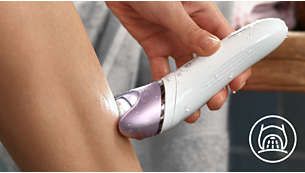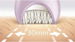 Extra wide epilator head covers more skin with every stroke for faster hair removal.