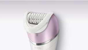 Extra wide epilation head grabs more hairs on the first pass for faster hair removal without pulling sensitive skin