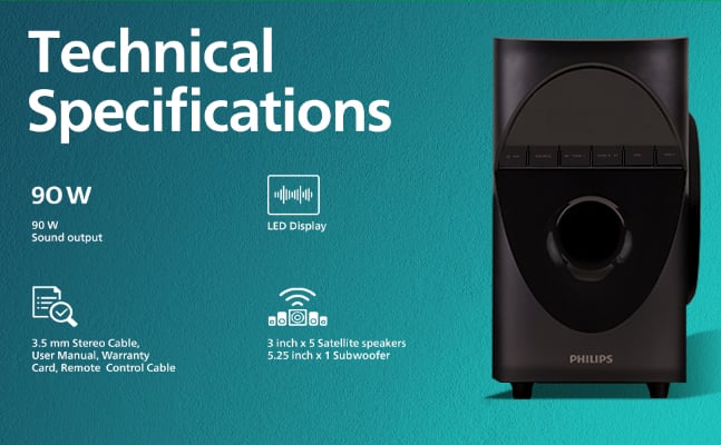 Philips SPA5190B ,5.1 Channel Multimedia Speaker, Black, 90 Watts