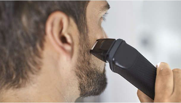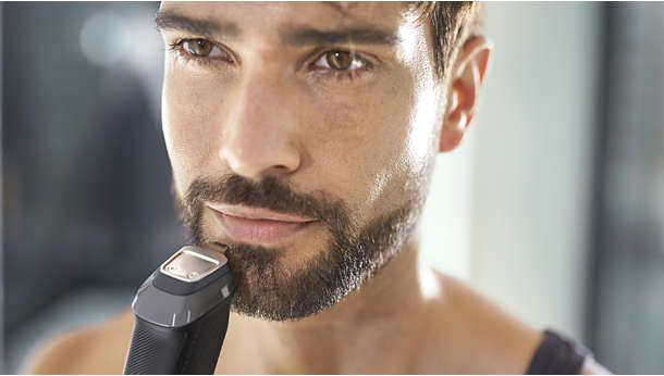 Use the precision shaver after trimming, to perfect the edges of your cheeks, chin and neck.