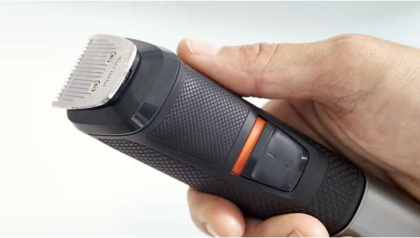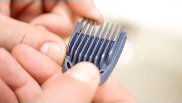 Quickly touch up your face and hair with the seven reinforced cutting guards. 2 stubble combs for 1mm and 2mm trimming, an adjustable beard comb, 3 hair combs at 9mm, 12mm and 16mm, and 1 body comb.