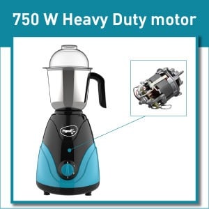 The powerful 750 Watt Motor of Mixer Grinder gives an exceptional performance and provides fine mixing and grinding of the ingredients at 3 different speed levels. The motor comes with an overload protector which protects it from sudden power surges and The Suction feeting in the mixer unit gives an anti-skid feature to it.