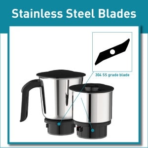 The jars have SS 304 grade blades that enable efficient grinding for all your grinding needs.