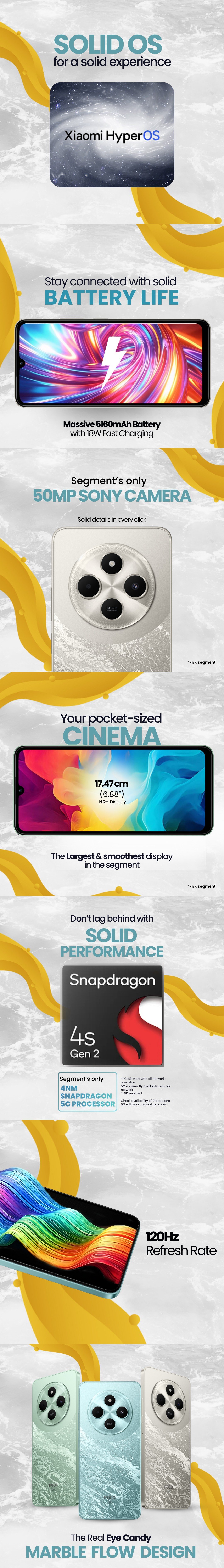 - Display: 17.47 cm (6.88 inch), 1650 x 720 Resolution, 120Hz HD+ IPS LCD