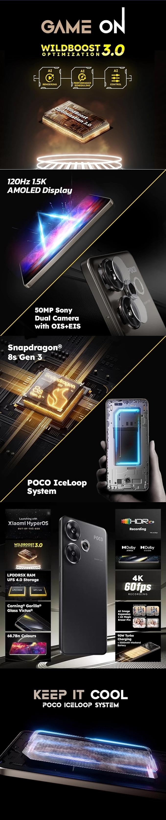 Poco F6 5G 256 GB, 8 GB RAM, Poco Titanium, Mobile Phone