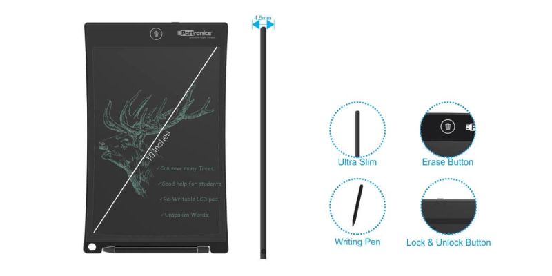 LCD writing pad only 4.5mm thin, so you can easily carry it in your schoolbag, office bag etc.