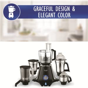 Preethi Zodiac is a magnificent product which enlightens you with the amazing Vega 5 Motor which is embedded in it which grinds turmeric in 2 minutes. Along with powerful motor, it has fast motor cooling functionality which does cooling within no time. Instant fresh juice helps in extraction of more juice. Zodiac is the first Mixer Grinder to have 3-in-1 insta fresh juicer jar – One Jar which can do three functions – (1) Centrifugal juicer which can juice fresh fruits, (2) Super extractor which can extract tamarind essence or coconut milk (3) Blender which can make shakes and lassi. The product also has first of its kind 2.1 liter master chef plus jar which can perform seven functions – atta kneading, chopping, citrus press, pureeing, slicing, grating and meat mincing. It also has speed controls which help in controlling the speed as such. Preethi Zodiac is a must-buy product for the consumers. It not only provides you with fine grind but also enlightens your kitchen with an amazing product.