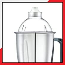 The jars are designed to perfection with superior quality stainless steel body with sparkling mirror finish. The dry jar and chutney jar is perfect for all your grinding and powdering needs such as dry masalas. The wet jar does grinding like idli, dosa batter and also it’s suitable for preparing lassi etc. These jar grinds faster and finer, thus saving your time.